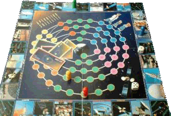 Le plateau représente un circuit extérieur où vous devez d'abord acheter un satellite, une fusée, un centre de mise à poste et une station de transmission. Une fois équipé, vous devez mettre sur orbite le satellite sur le parcours central.