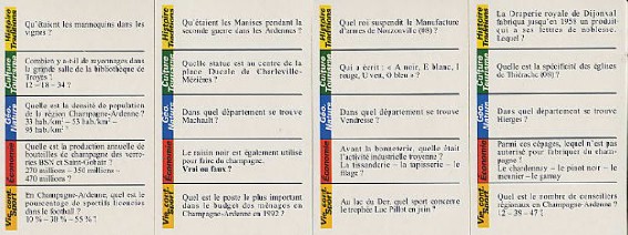 Jeu traditionnel de type "Play Bac", le but est de remporter en premier 5 cartes "Étape" correspondant à 5 grandes villes (Chaumont, Troyes, Reims, Châlons sur Marne, Charleville Mézières) de la région Champagne Ardenne.