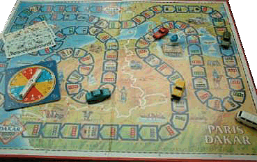 Le plateau représente le trajet Alger-Dakar de 1985. Chaque case compte pour 100 kms et réclame 20 litres de consommation d'essence. Au départ, chaque joueur choisit son véhicule et reçoit 1000 litres de carburant. A chaque tour, les joueurs font tourner une flèche et avancent du nombre indiqué de cases.