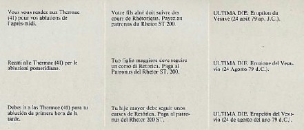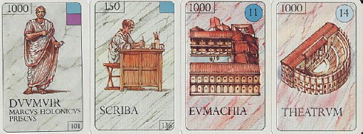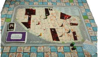 Pompéi; à chaque tour, le joueur pioche une carte "Vita romana" et en suit les